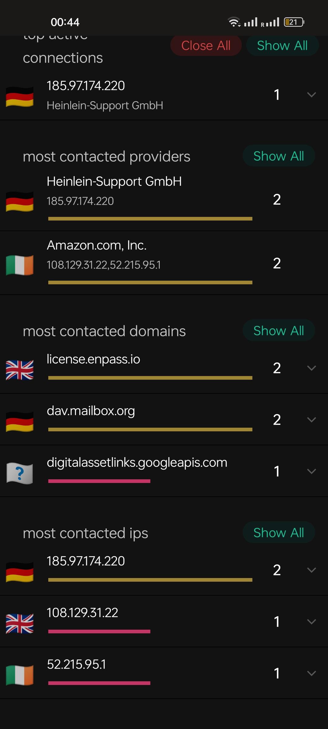 MasonHaley Posted May 26, 2023 Report Posted May 26, 2023 Apologies for resurrecting this months-old thread, but I'm in a similar hunt for information. I recently noticed Enpass connecting to an Amazon AWS IP in Ireland on my mobile. I'm curious to know if this is normal and if Enpass utilizes these servers.